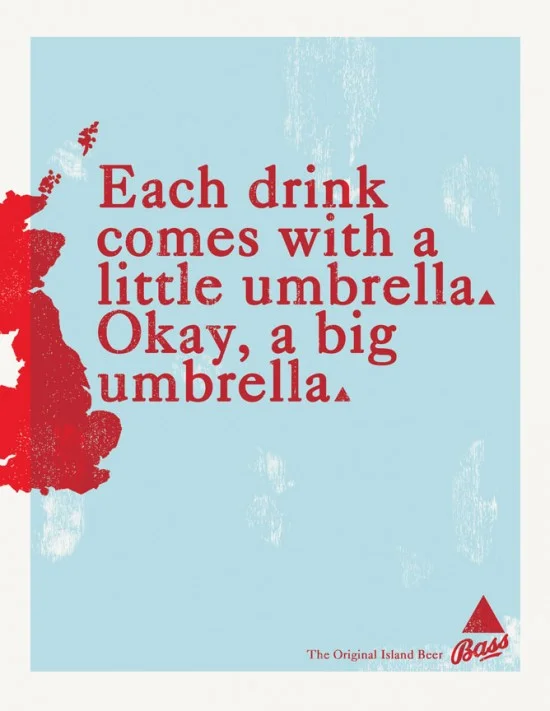 This poster campaign playfully positions Bass Ale as "the original island beer." It's both a nod to their proud British heritage and a poke at trendy Caribbean beers.